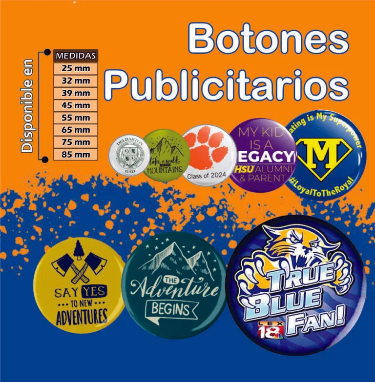 Personalizamos tus Botones Publicitarios con una gran capacidad de producción. Somos una de las mejores opciones del mercado; realizamos cualquier cantidad en el menor tiempo y con un precio justo.