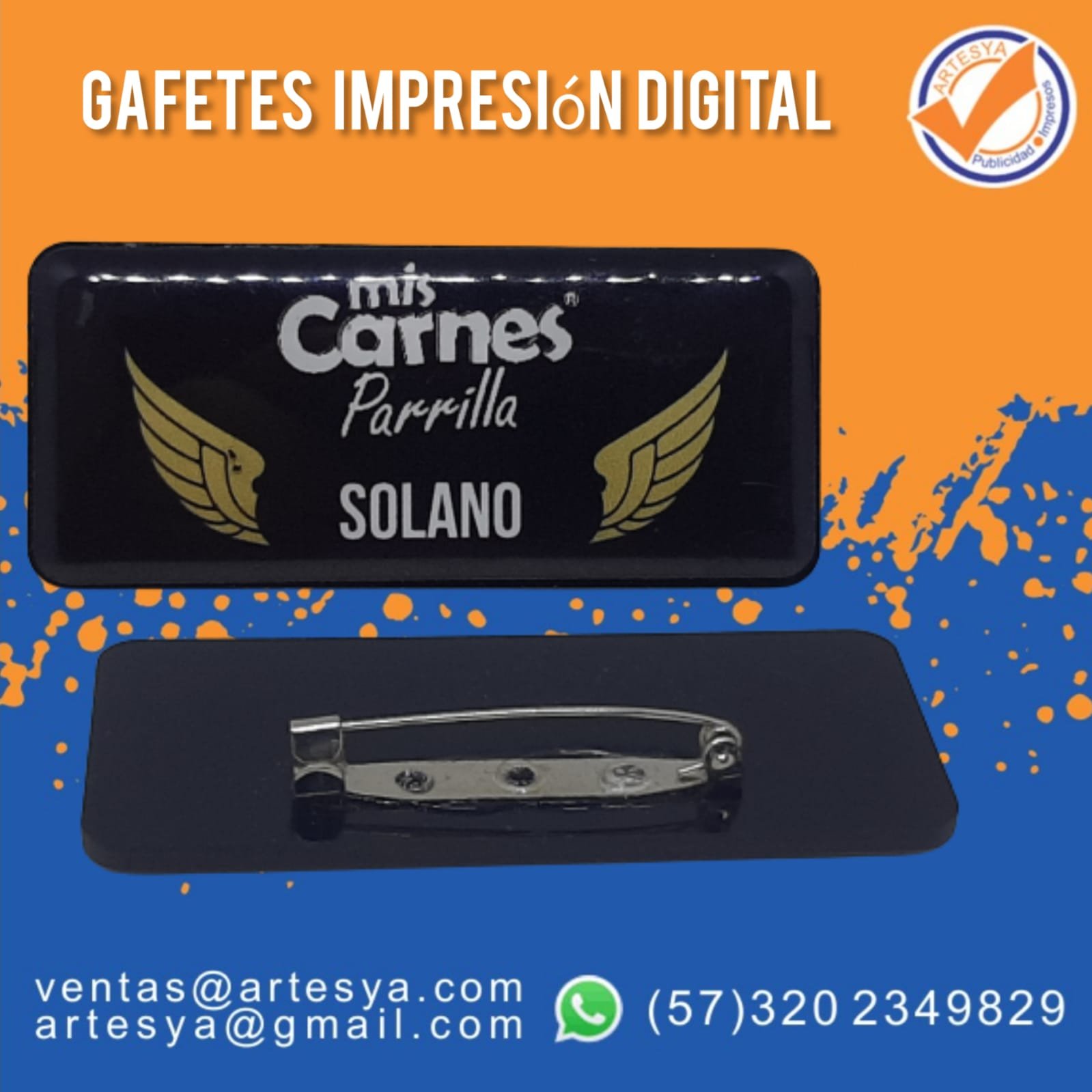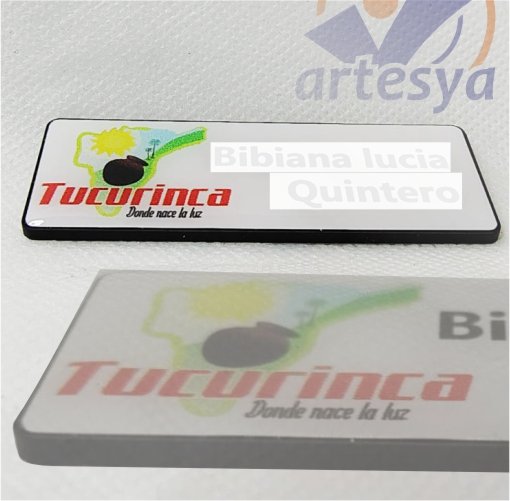 Gafete acrilico fullcolor, es una Placa de Identificación personal en impresión digital full color en vinilo, Protección en resina.