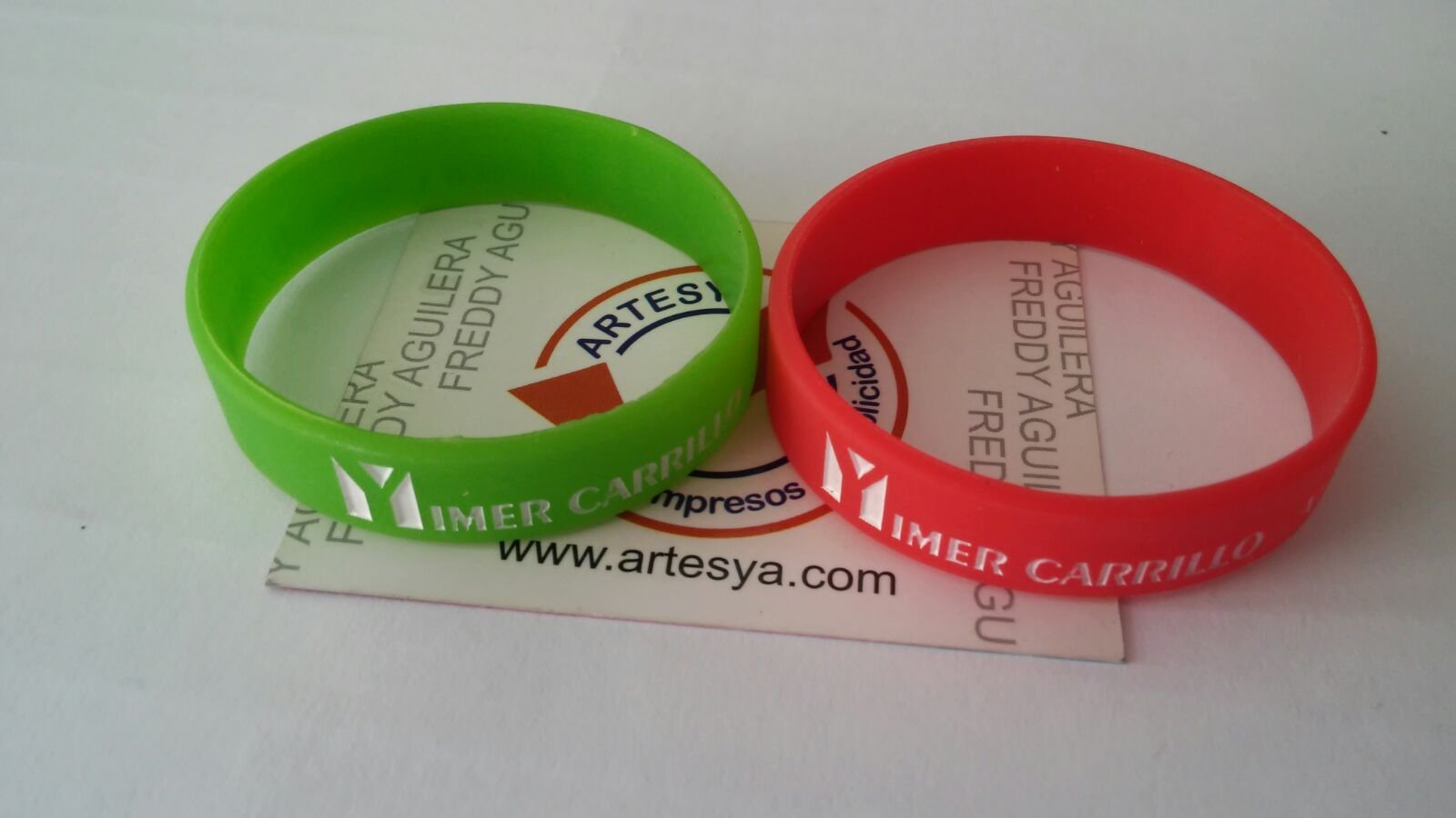 Manilla Silicona Bajo Relieve + 1 tinta. Ideal para promociones, combinando estilo y durabilidad para destacar tu marca en cualquier evento.