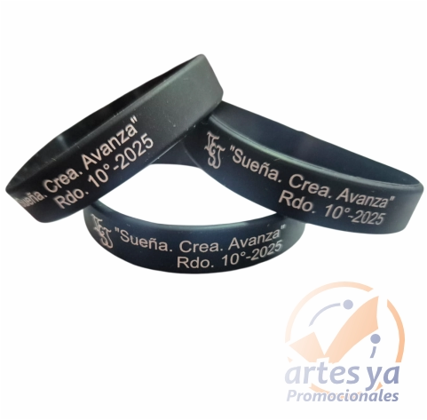 Destaca tu marca con nuestras manillas de silicona de alta calidad, perfectas para promociones y eventos. Personalizadas mediante serigrafía, aseguran que tu logotipo o mensaje resalte con claridad y estilo.